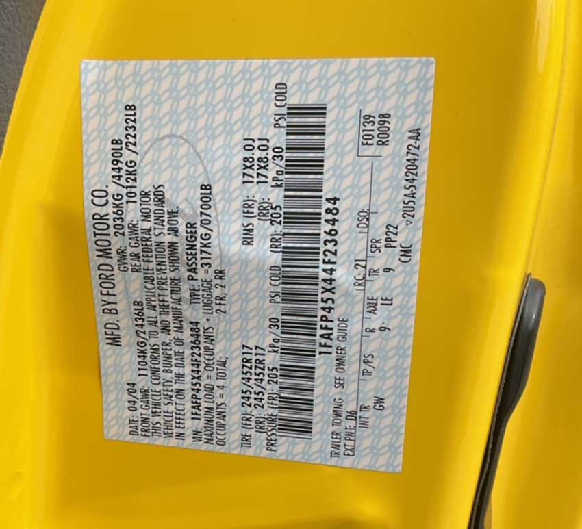 Makes: 2002-2004 Ford Mustang.Vehicle Tags: Mississippi.