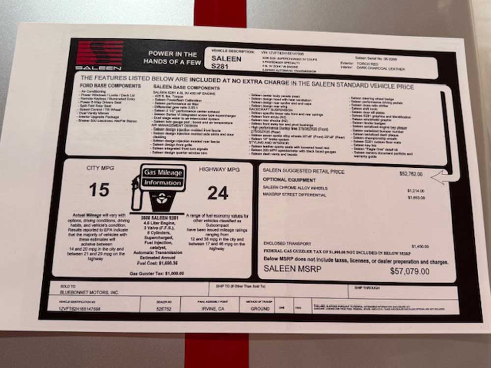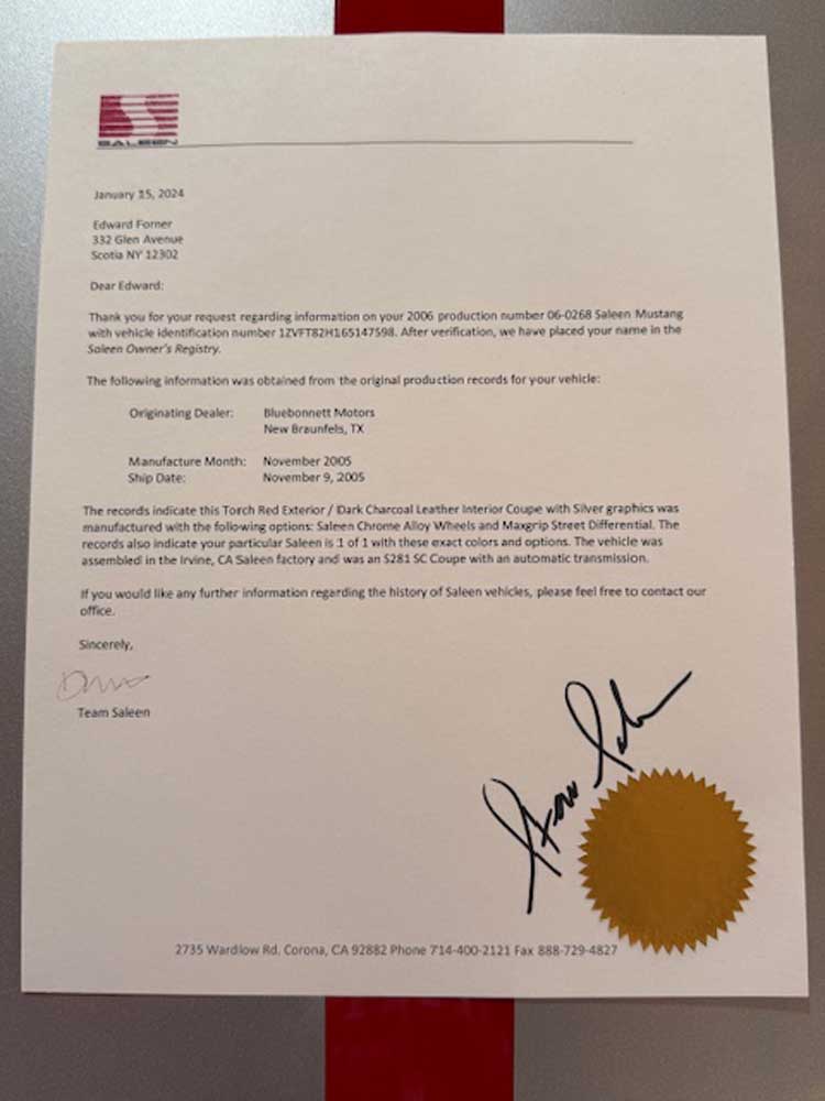 2006 Saleen Mustang Supercharged, one of one made in 06, #268 certified by Saleen